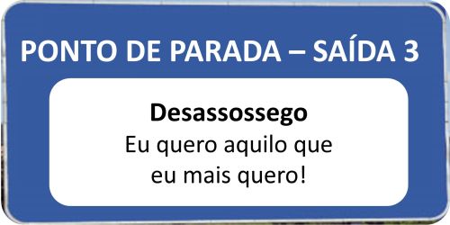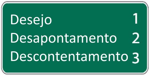 Se você não parou em Contentamento na Saída 1: Desejo, e também não escolheu Contentamento na Saída 2: Desapontamento, então não lhe restará pela frente outra saída a não ser a Saída 3: Descontentamento. Nela você se deparará com a seguinte placa: